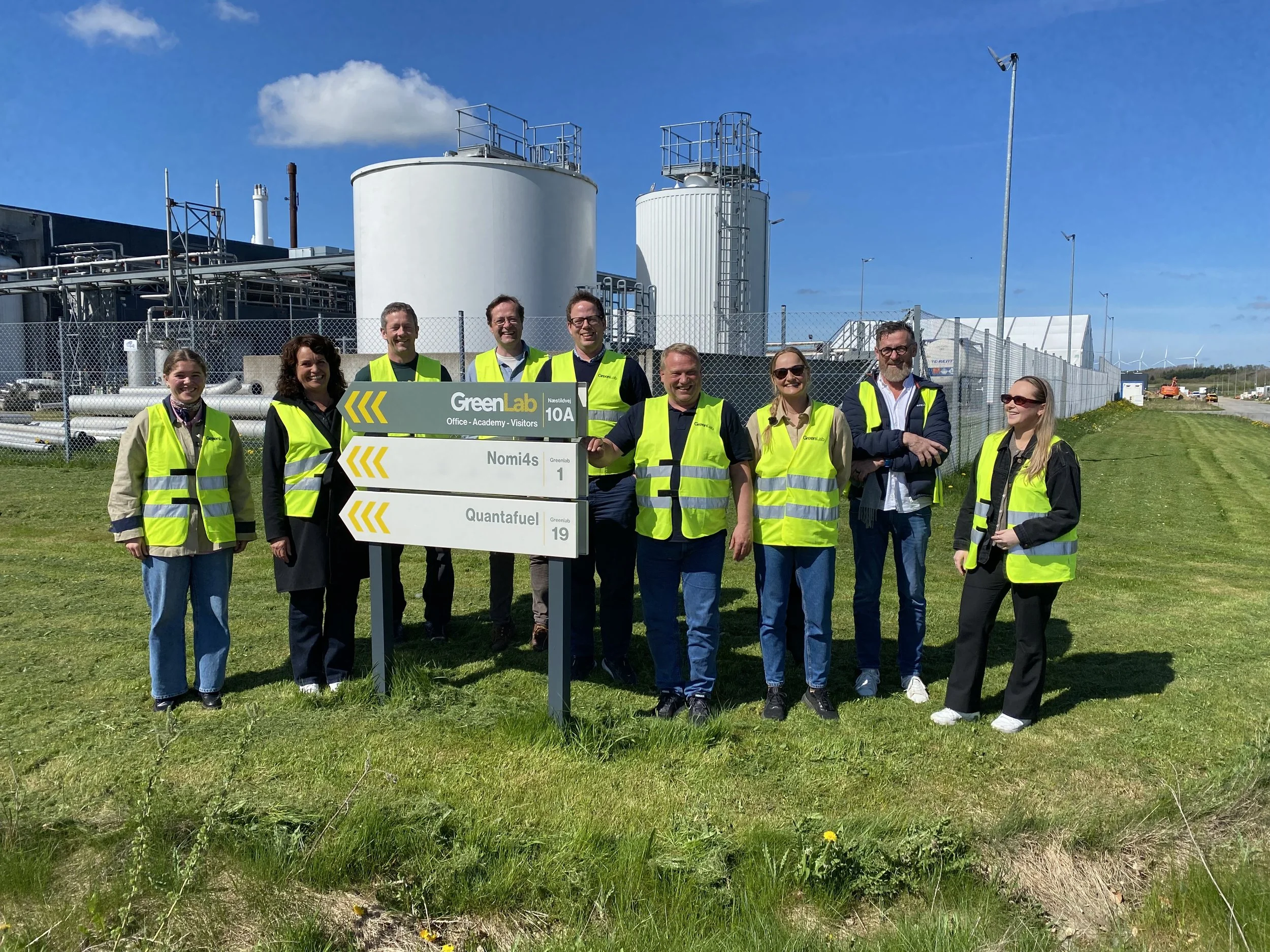 Delegasjonen frå Sogn hjå GreenLab. Frå venstre: Frøya Rydland Aase (Sogn Næring), Dagny Alvik (SIMAS), Claus Moe (Luster Bondelag), Andreas Wollnick Wiese (Luster kommune), Ole Gunnar Krakhellen (Luster kommune), Terje Bakke Nævdal (Sognekraft), Karoline Søvik Myklebust (Sogn Biohub), Magnar Bjørk (EPOS Consulting) og Tiril Amalie Johansen (Grøn region Vestland).